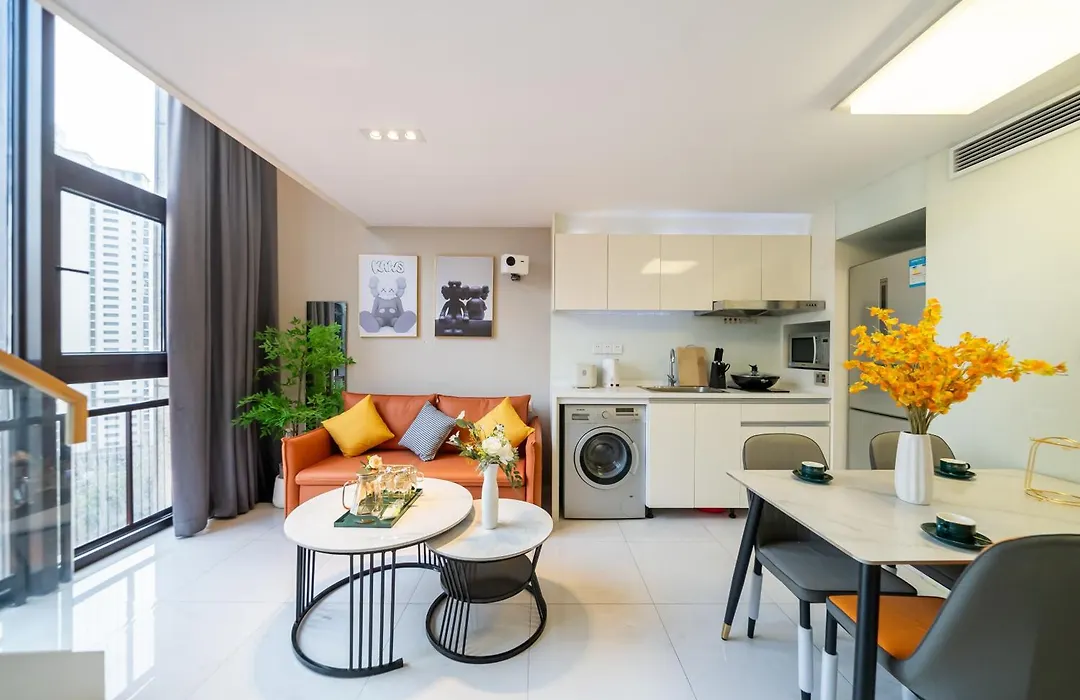 Il Shanghai Hills & Wanye Prime Spacious Loft With Multi Rooms Near Metro Line 13 And The Bund offre anche un angolo cottura con un frigo, un bollitore e utensili da cucina. Il Shanghai Hills & Wanye Prime Spacious Loft With Multi Rooms Near Metro Line 13 And The Bund è vicino alla stazione della metropolitana Zhongtan Road e a 45 km dall'aeroporto Internazionale di Xi'an Xianyang.